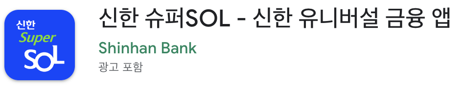 1. Google play 또는 App Store에서 "신한 슈퍼SOL" 앱을 다운로드 받습니다.